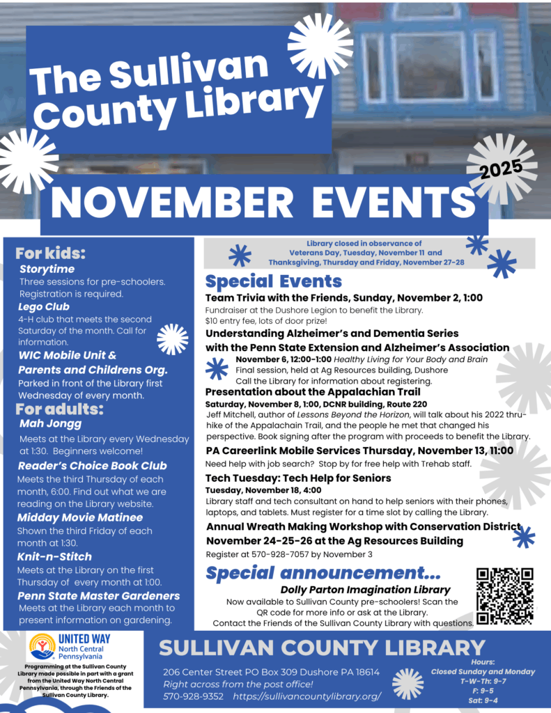 The Knit-n-Stitch will be meeting at the Library the first Thursday of each month from 1:00-3:00 p.m.