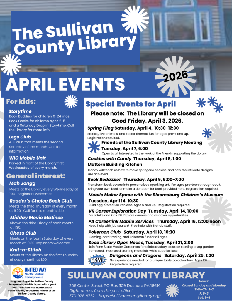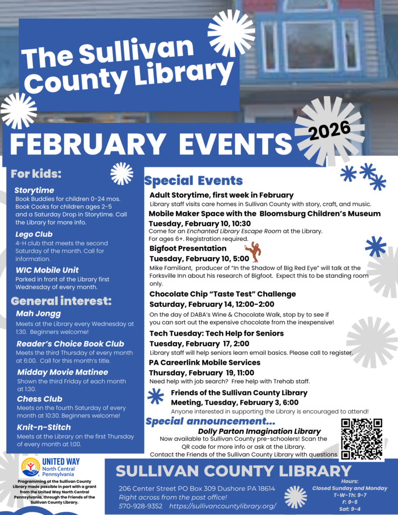 The Knit-n-Stitch will be meeting at the Library the first Thursday of each month from 1:00-3:00 p.m.