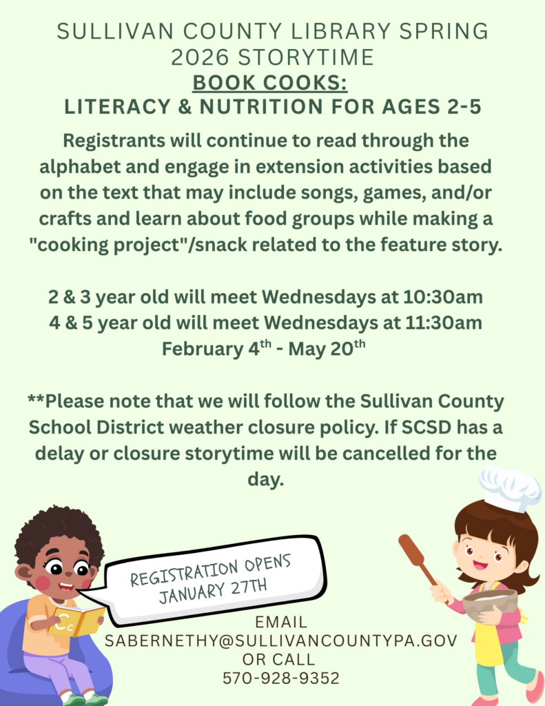 Children’s Tumblebook is available on the Library catalog page and contains hundreds of ebooks specifically for children. Cruise into Kindergarten This page is a resource for parents and caregivers that has suggested reading lists and includes an online game to introduce caregivers and their preschool children to engaging online resources to strengthen early literacy, math, and science skills.
